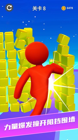 奔跑吧勇士是一款以果冻小人为主角的休闲跑酷类手机游戏,玩家通过操控角色在赛道上收集同色系果冻实现体型进化,最终以巨人形态挑战关卡BOSS。游戏采用低多边形卡通渲染技术,通过动态物理碰撞系统实现角色成长与障碍破坏的沉浸式体验。