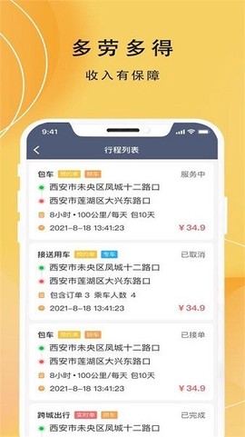 4. 随时在线查看行程及各类接单数据,掌控一切;